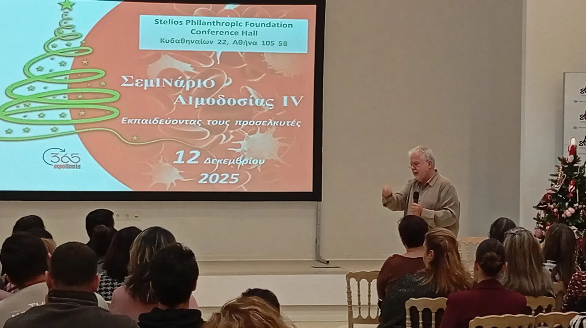 Η εκδήλωση περιλάμβανε ένα ιδιαίτερα ενδιαφέρον και πολυδιάστατο πρόγραμμα, με κεντρική ομιλία από τον Jean-Baptiste Thibert, Διευθυντή Βιολογίας, Θεραπευτικής και Διάγνωσης στο Établissement français du sang. Η ομιλία του, με τίτλο «Is blood a gift or a commodity?», ανέδειξε μια εναλλακτική προσέγγιση στην αιμοδοσία, εξετάζοντάς τη μέσα από τη σκοπιά της κοινωνικής και οικονομικής θεωρίας, προσφέροντας πολύτιμες γνώσεις και νέες προοπτικές στους συμμετέχοντες.
